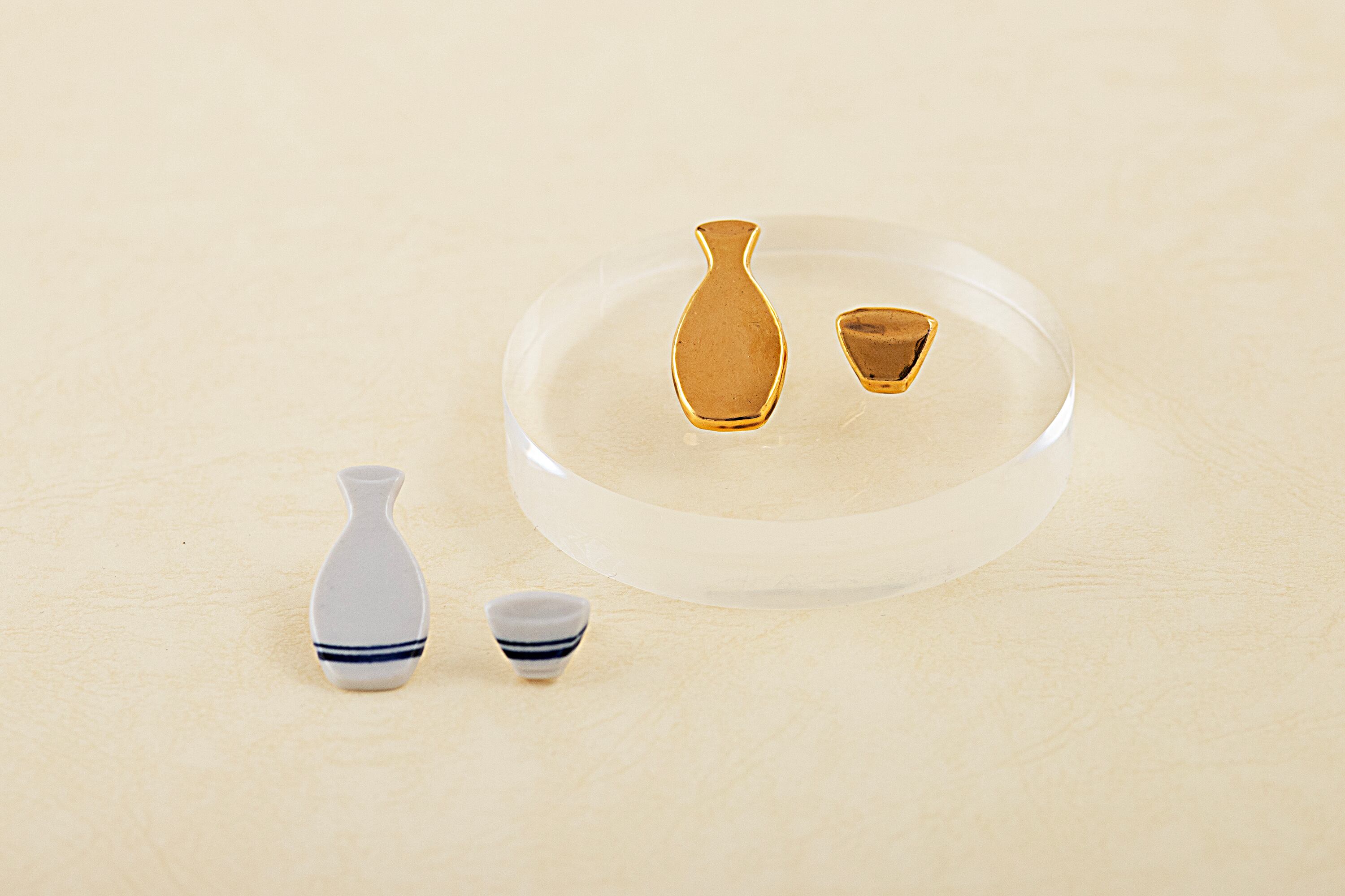 徳利とおちょこの形をした、陶磁器製のピアス&イヤリングです。